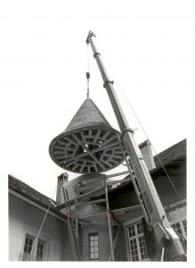 18 Maison du Prieur toiture tavillon sur tour installation 1980
